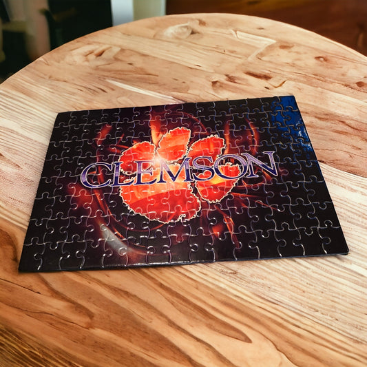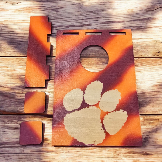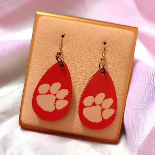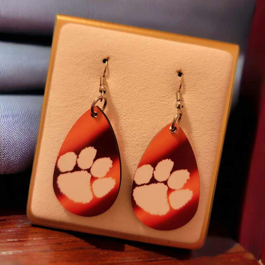 Clemson Wooden Teardrop Earrings (Purple and Orange)