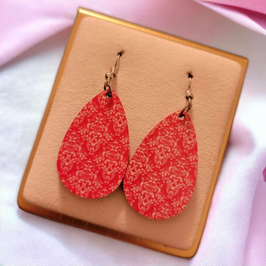 Pink Wooden Teardrop Earrings
