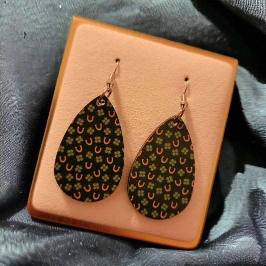 St Patricks Day Wooden Teardrop Earrings