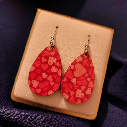 Valentine's Day Wooden Teardrop Earrings